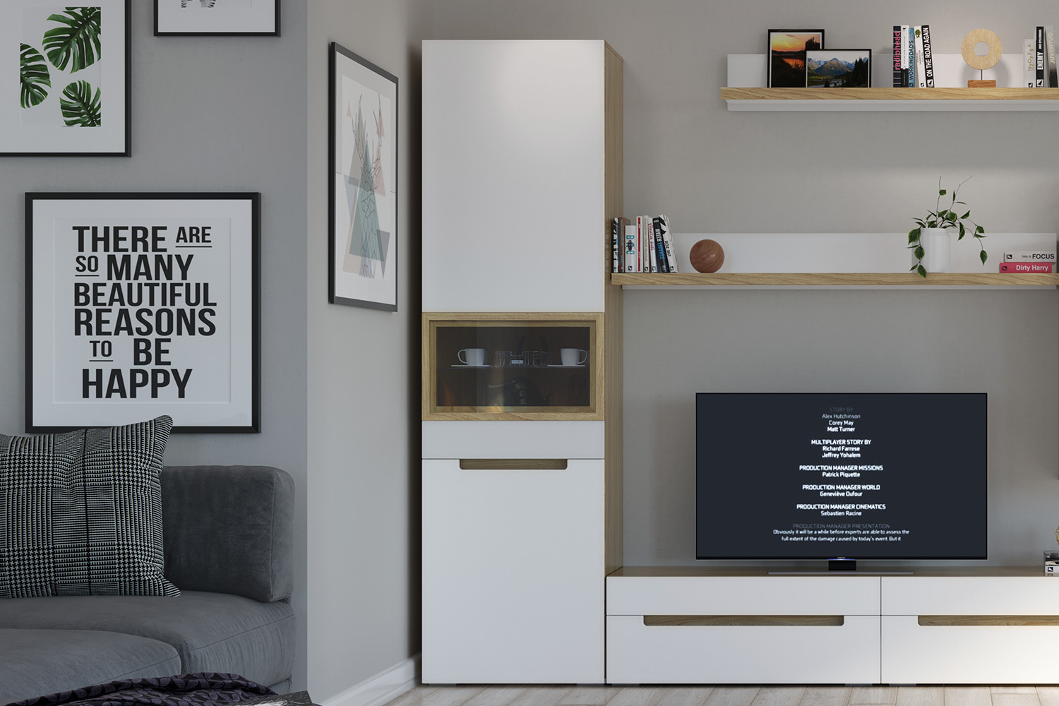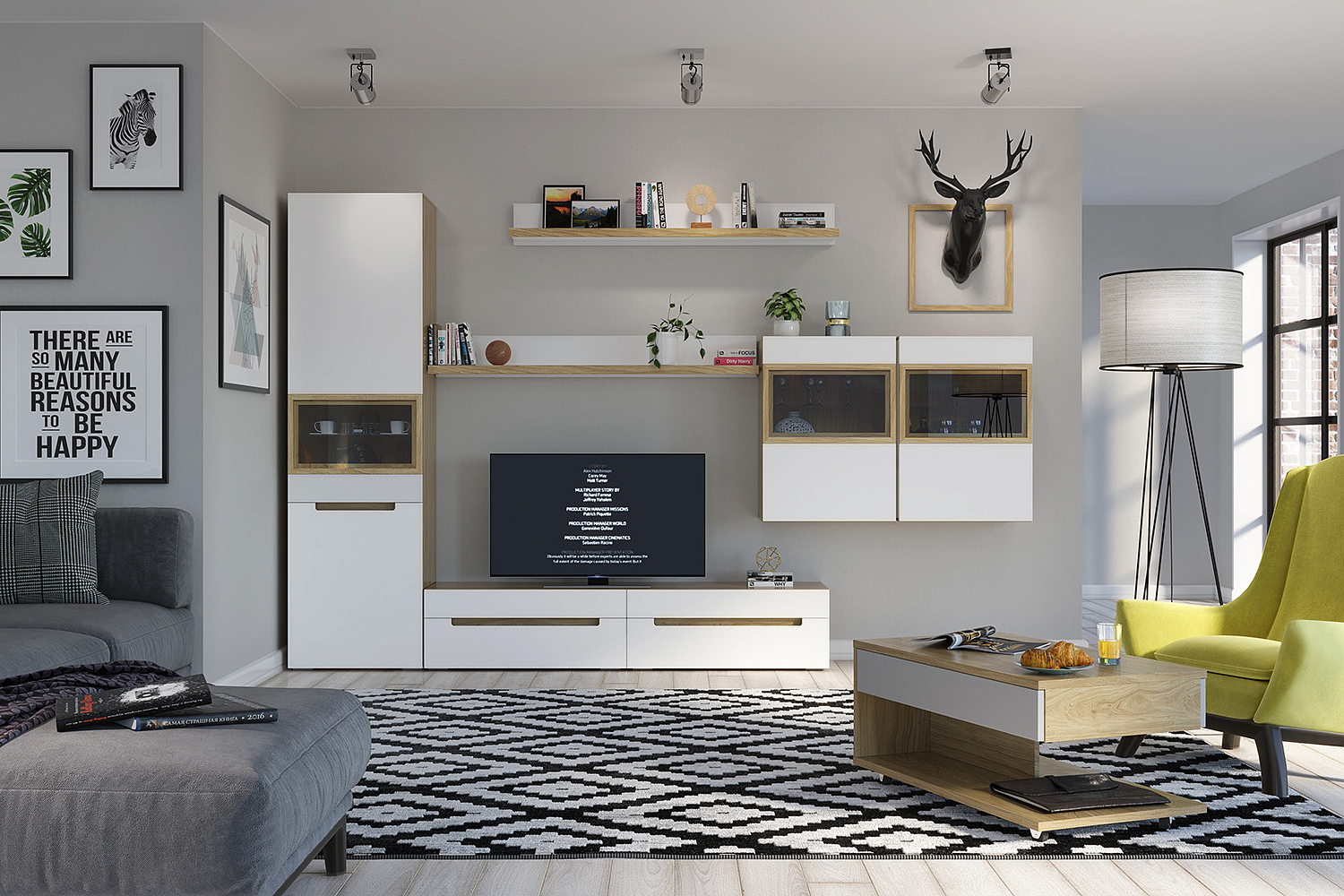 – описание: назначение для гостиной, стиль современный, минимализм, размер 213.2x60.1x41.6 см, цвет швейцарский вяз, белый.