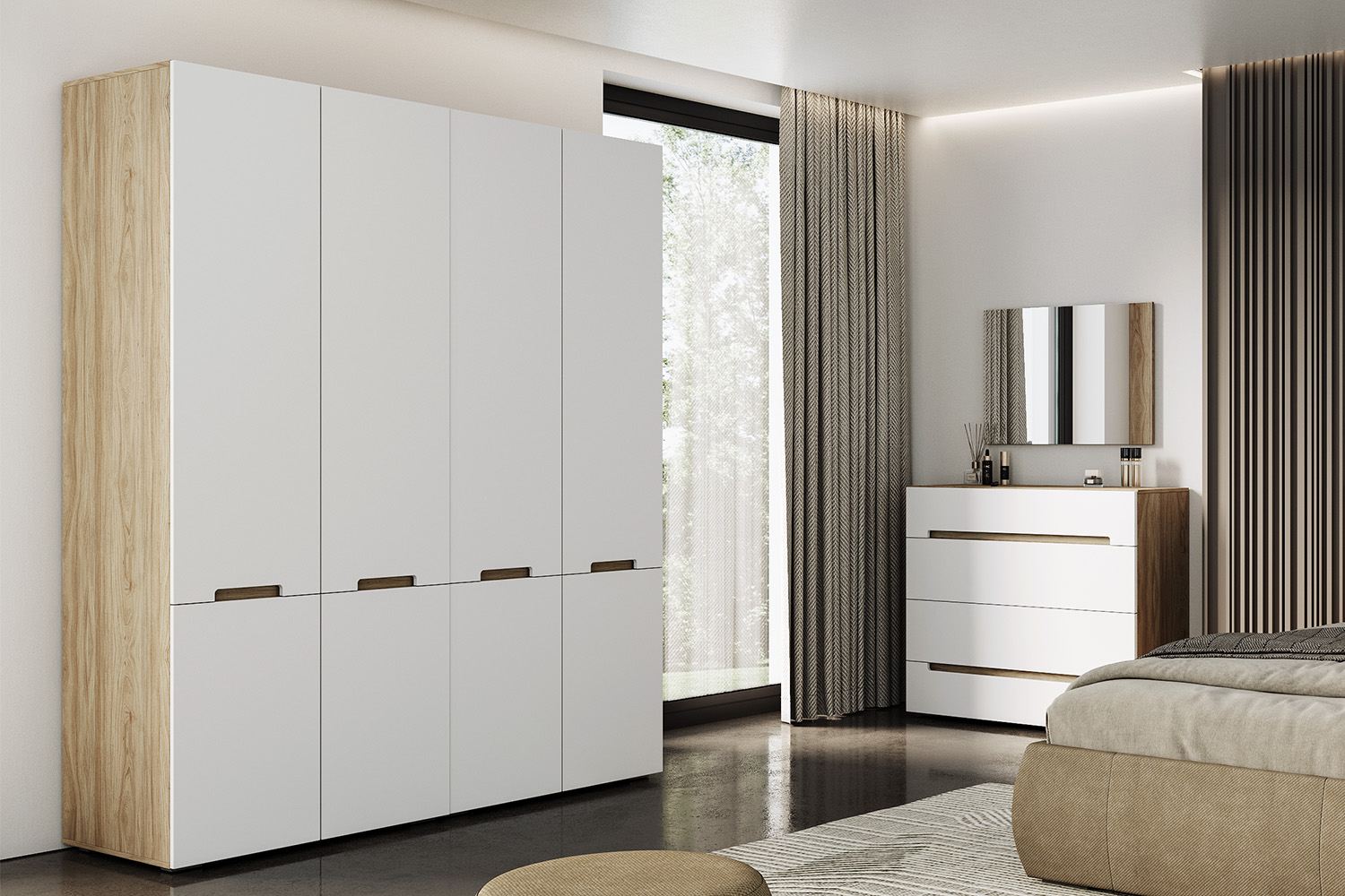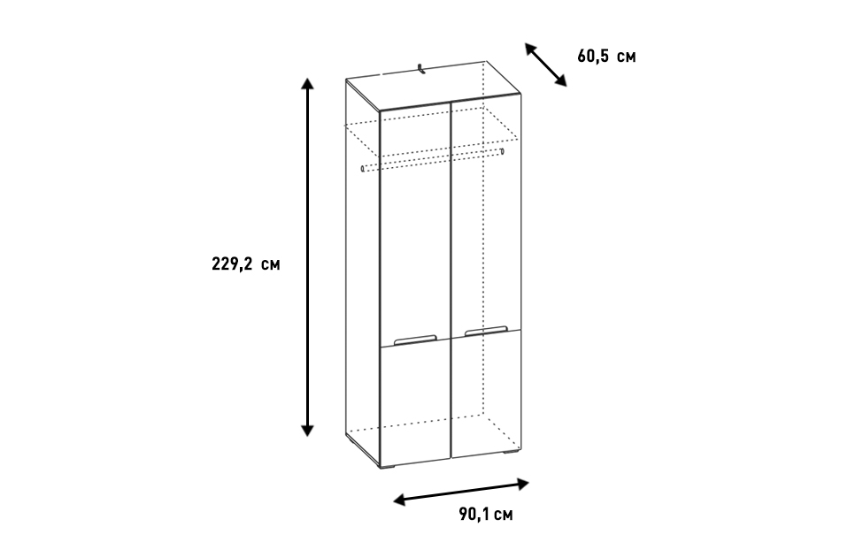 – описание: стиль современный, минимализм, размер 229.2x90.1x60.5 см, назначение для одежды, цвет швейцарский вяз, белый.