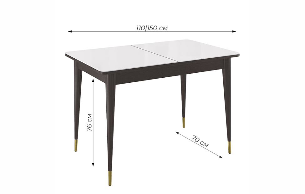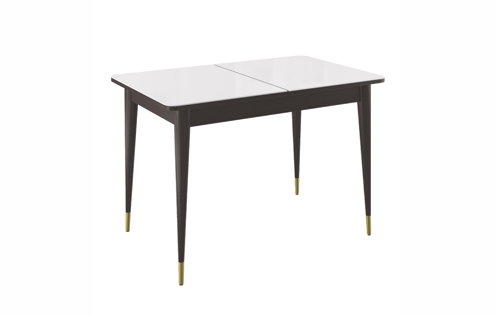 Стол обеденный Мане прямоугольный раздвижной К1100 опоры цвета венге с металлическими наконечниками, столешница - стекло белое сатин.