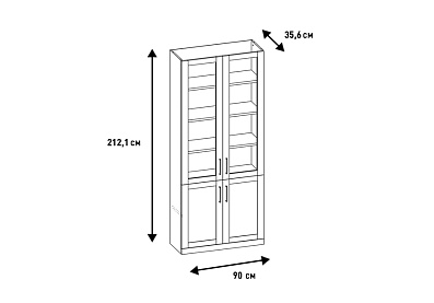 - Вверху отделение с двумя стеклополками, с распашной рамочной дверью (вставка двери — стекло прозрачное 4 мм), внизу — два выдвижных ящика на направляющих скрытого монтажа со встроенным доводчиком;