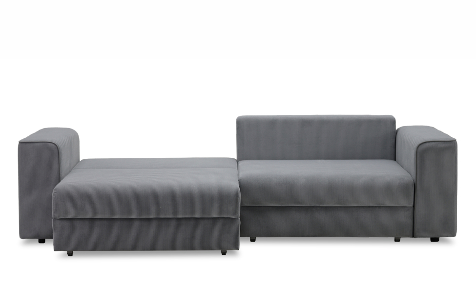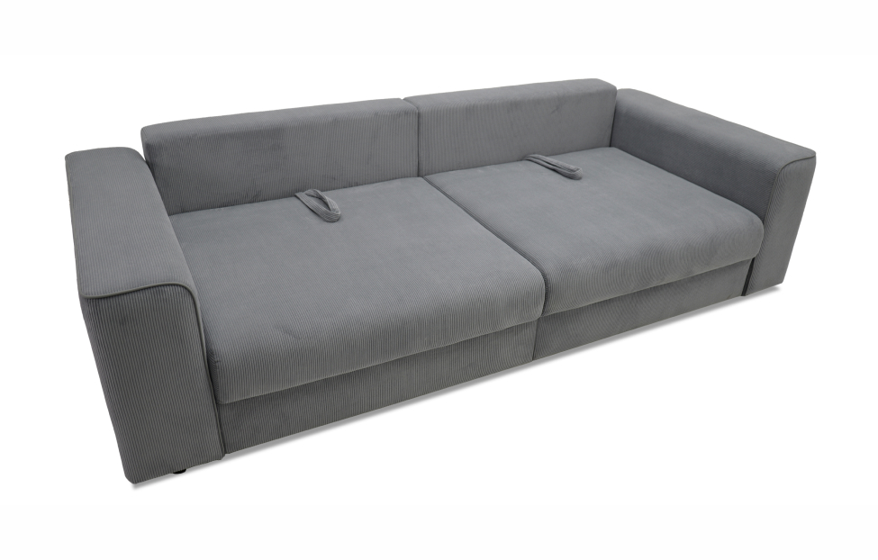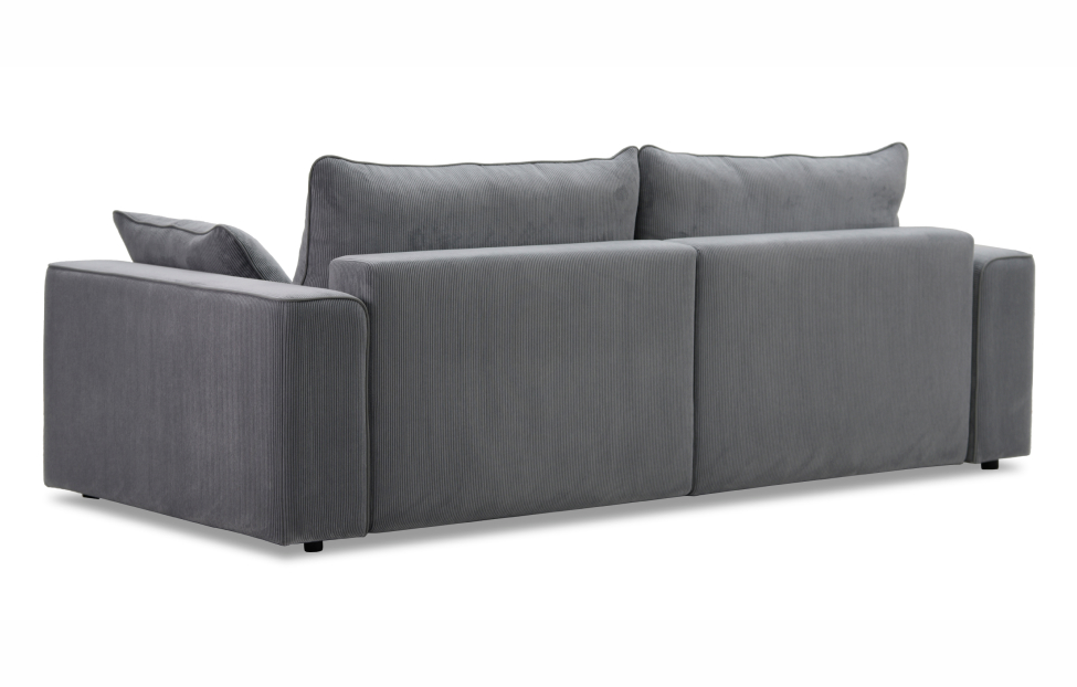 Диван выполнен в современном стиле, который будет гармонично смотреться в любом интерьере. Обивка из велюра c вертикальной текстурой актуального серого оттенка приятна на ощупь и легко чистится.